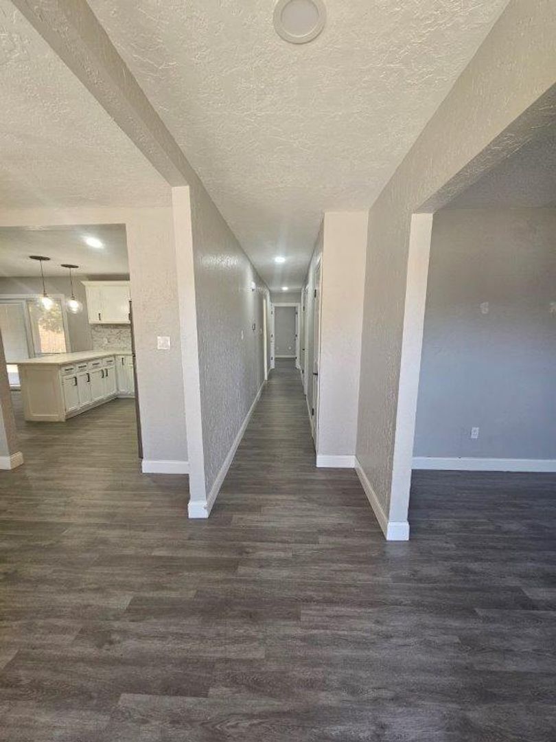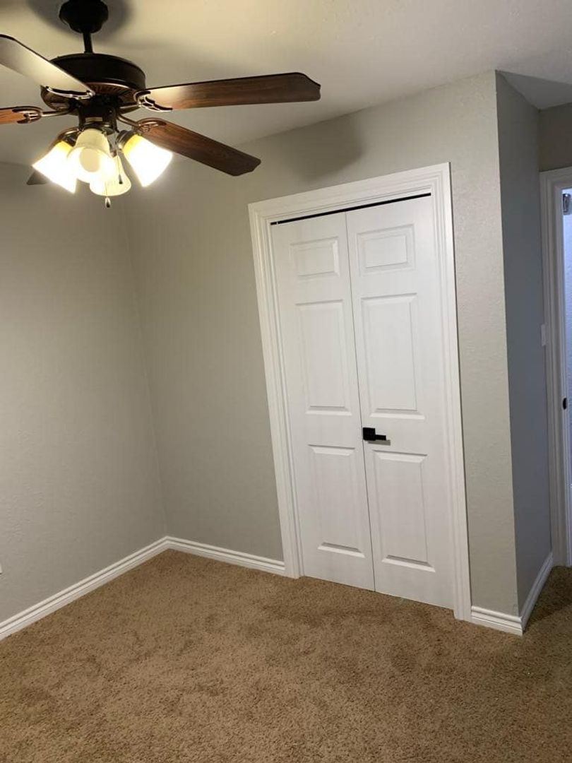 This home features 4 bedrooms, 2 bathrooms and a 2 car garage. Lots of cabinet space, open kitchen with microwave, stove/oven, dishwasher, refrigerator, garbage disposal, dining area, fireplace with built in bookshelves, ceiling fans, window coverings, double bathroom sink in master bath, LVT, carpet and tile flooring. Spacious backyard with wooden privacy fence and covered patio. One year lease required. Housing guidelines apply in regards to family size. Active military will receive refund of application fee if approved and enter a lease agreement.